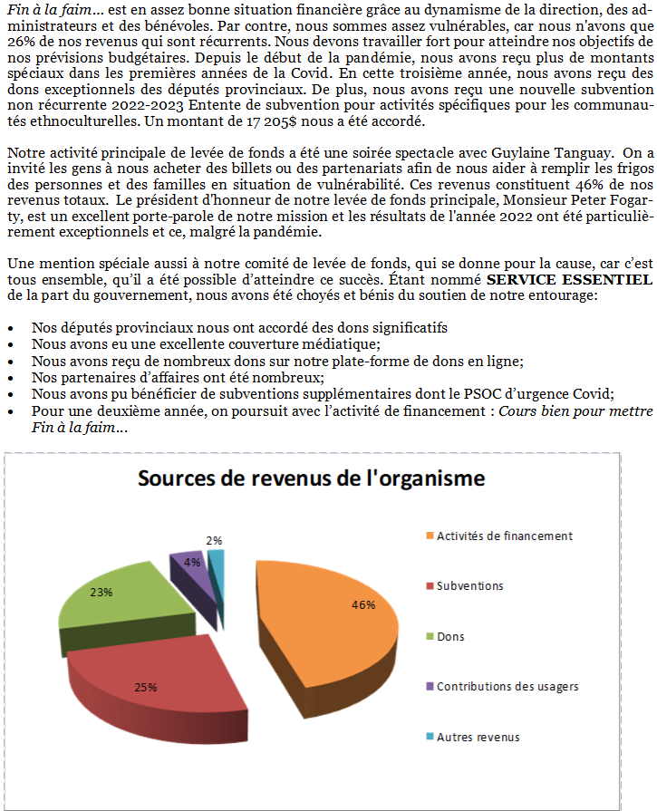 Sources de revenus de l’organisme
